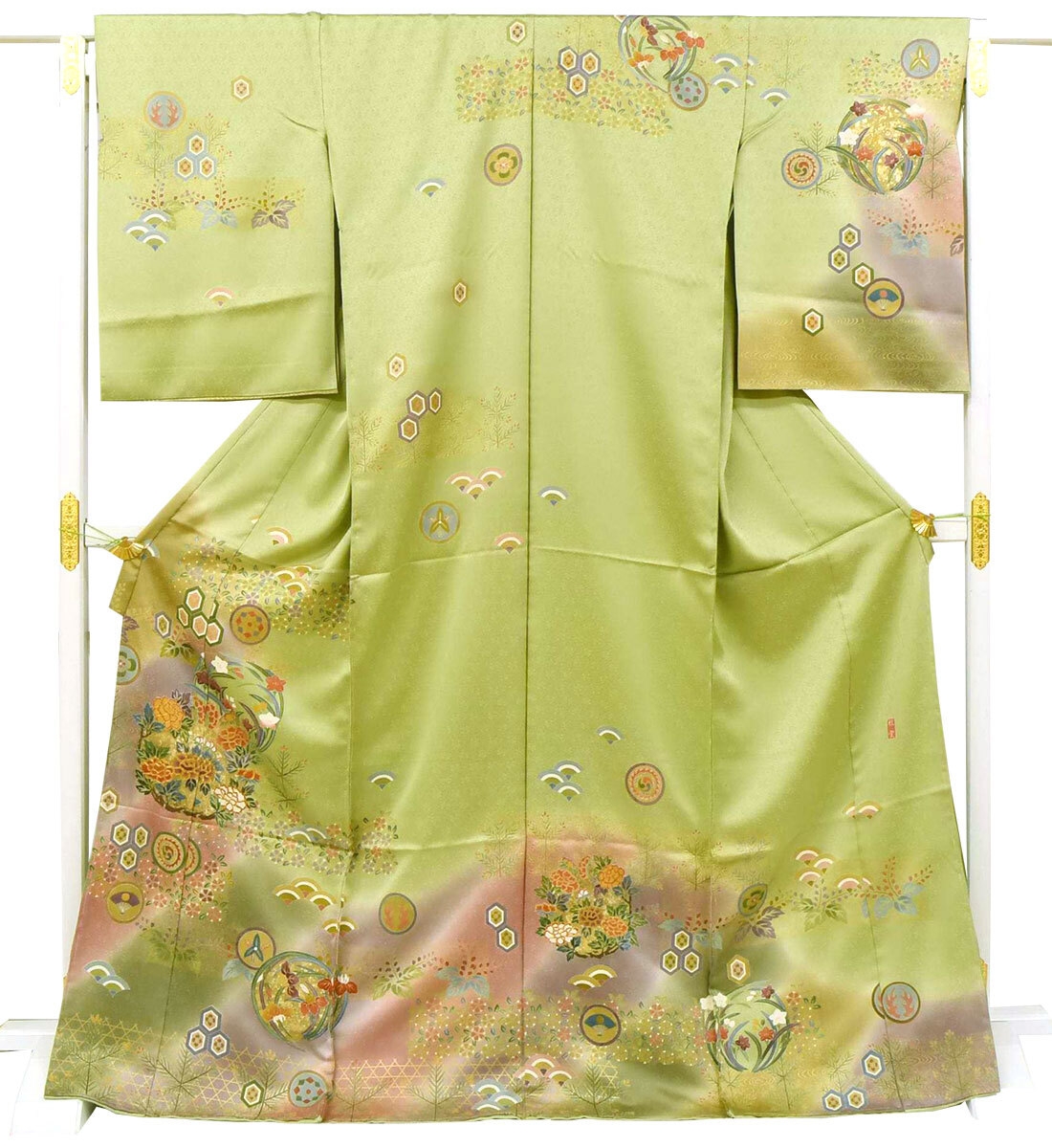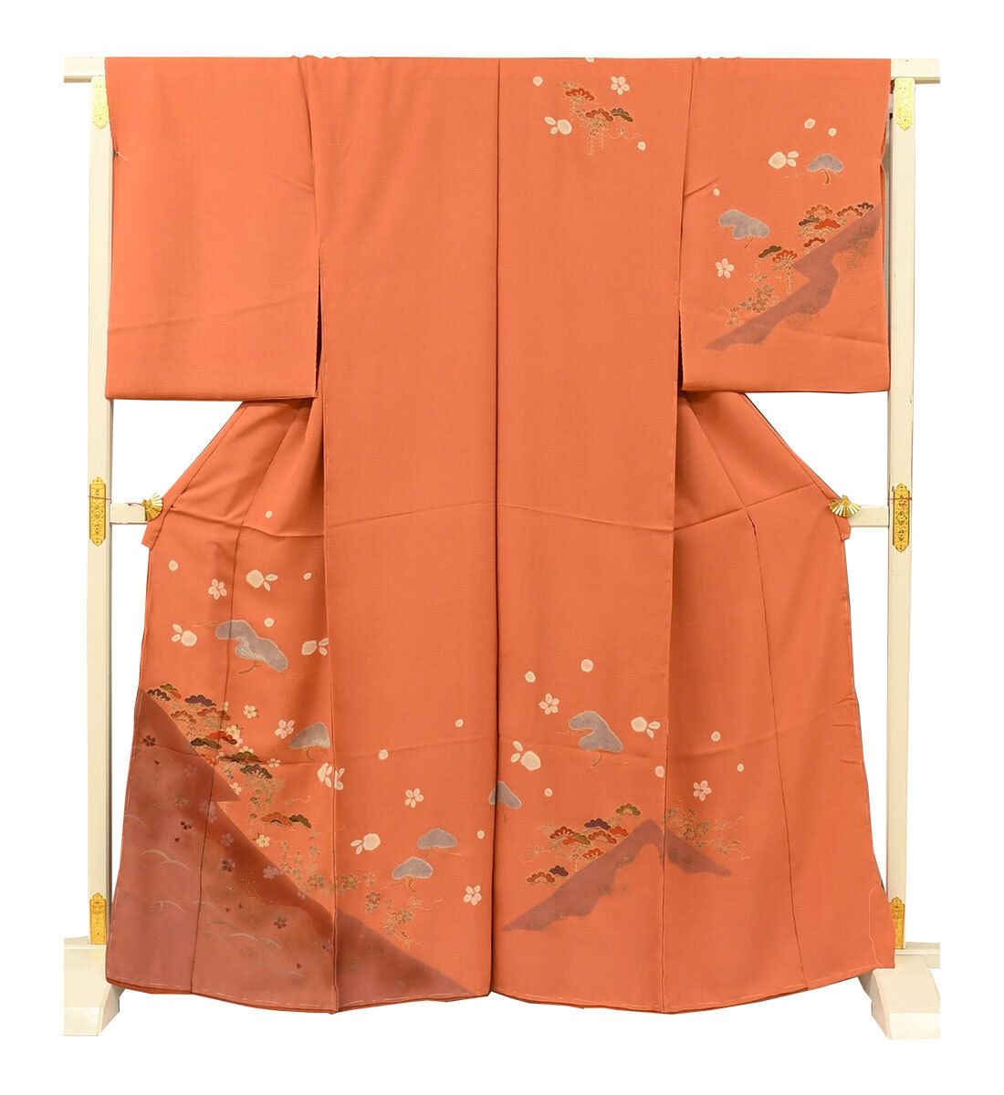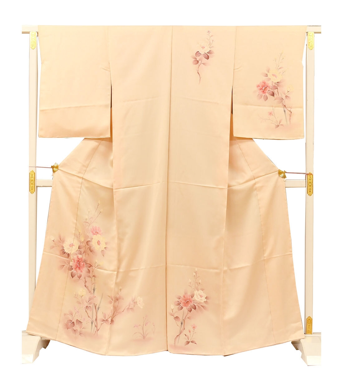 訪問着は縫い目をまたいでもひとつの絵のようにつながる美しい絵羽模様で、胸や袖といった上半身にも描かれておりとても華やかな着物です。
