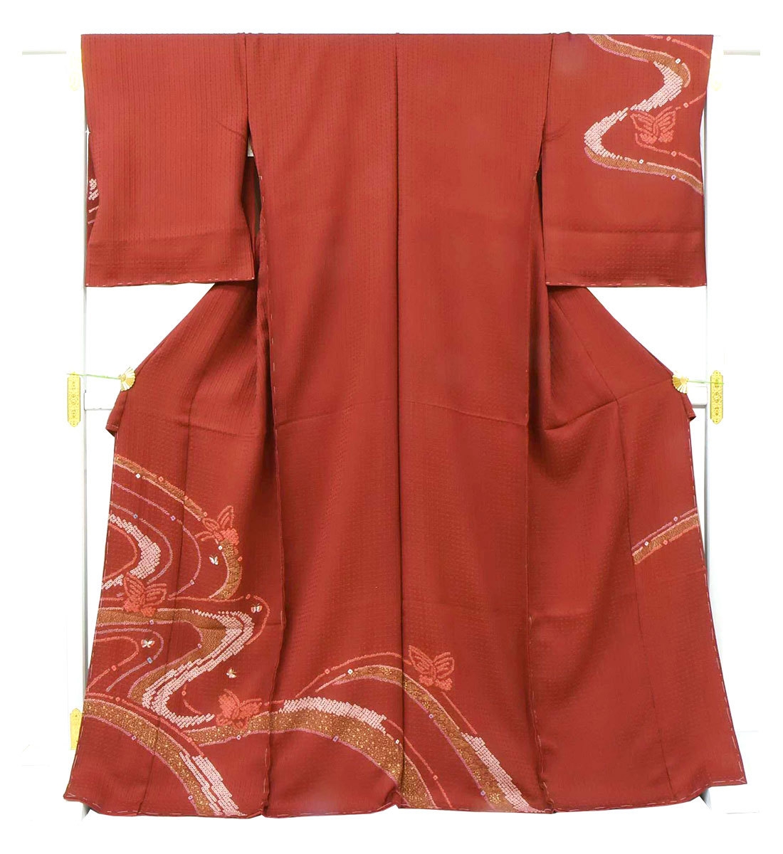生地全てにわたって絞られたものを「総絞り」と呼び、「絞り染め」という技法で染め上げています。一粒づつ括っていく細かい作業が1つの振袖で約20万粒以上にも及び、大変な手間暇をかけて作られます。近年話題の「総絞り」の振袖はとても高級品な着物です。