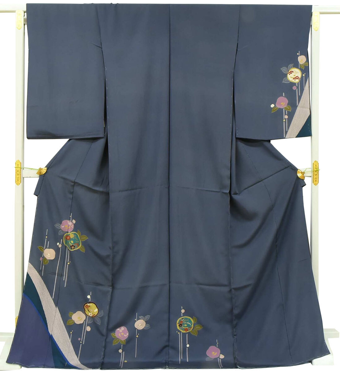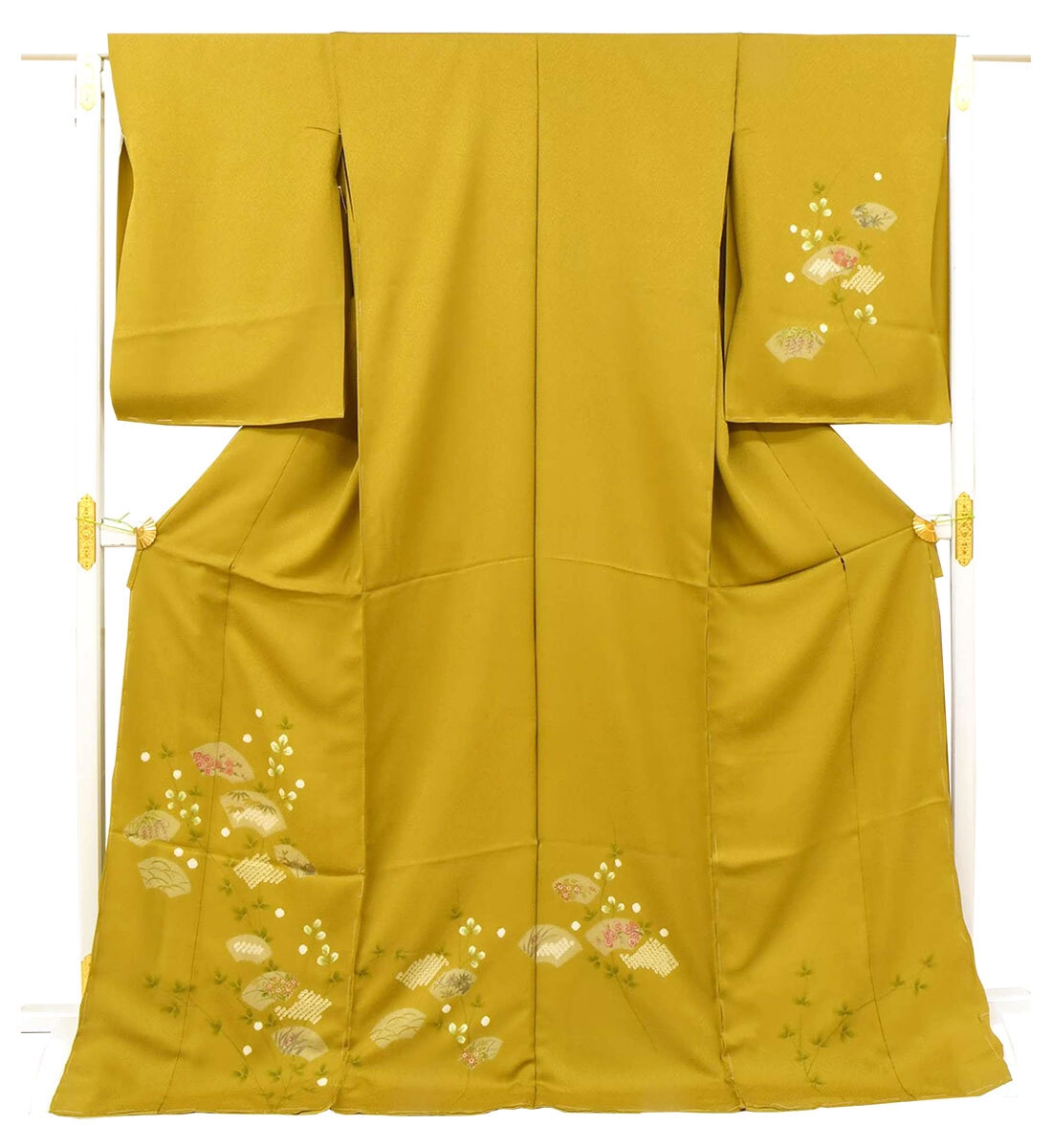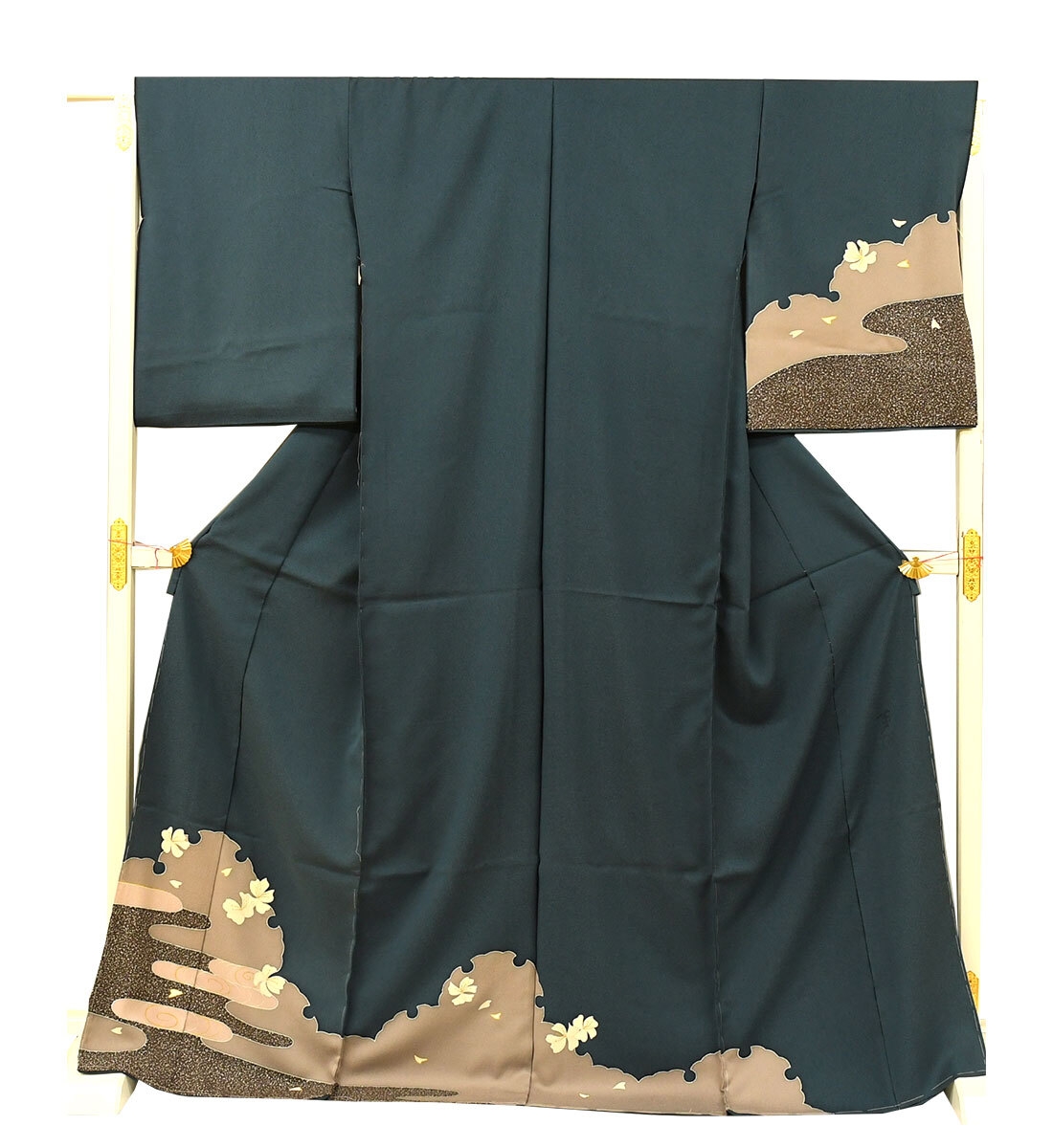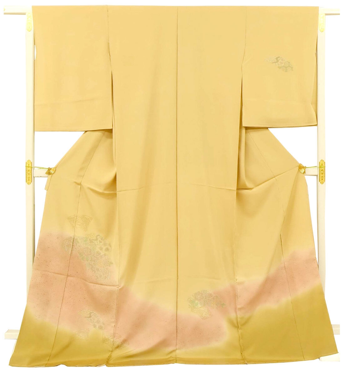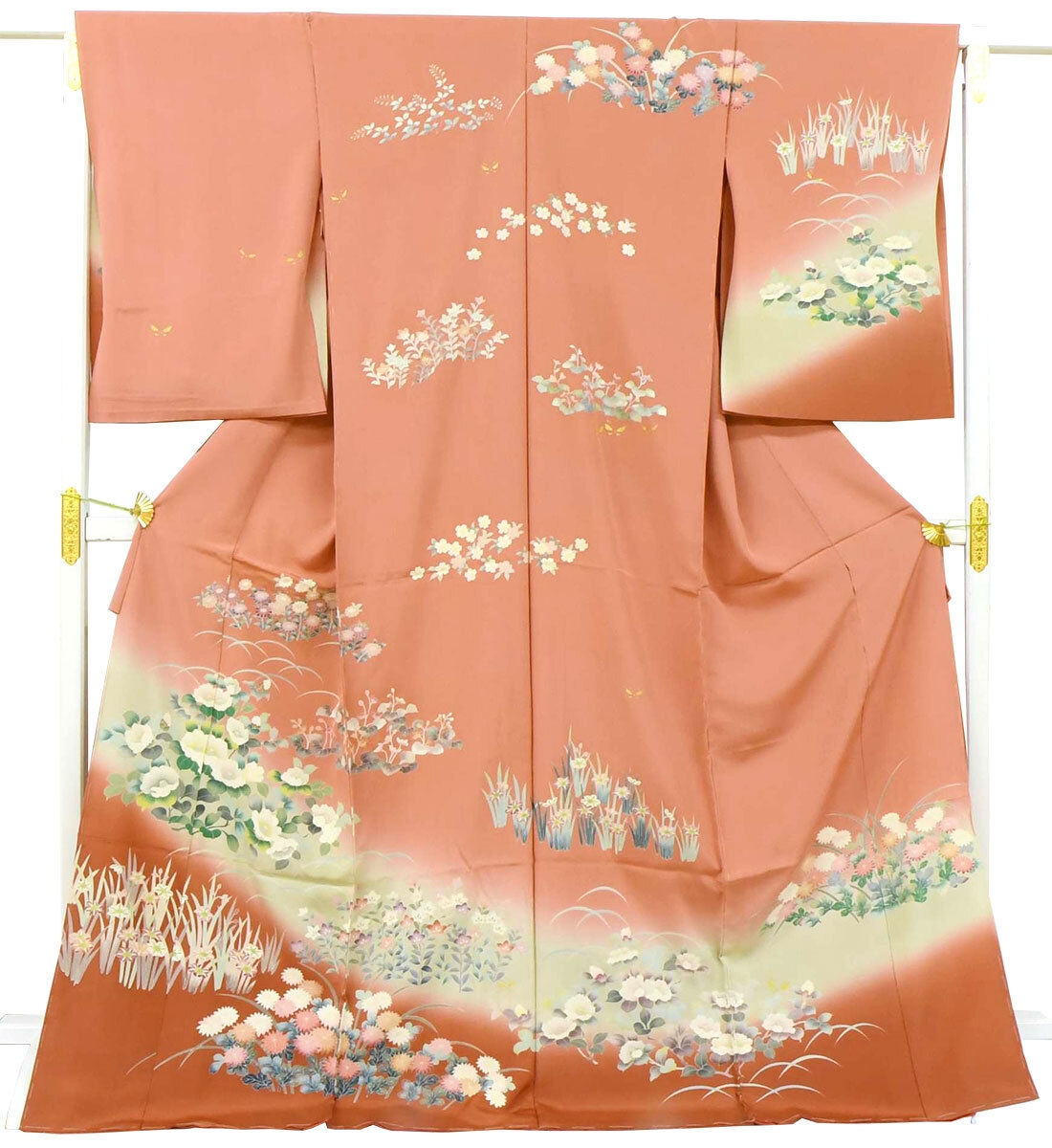 訪問着は縫い目をまたいでもひとつの絵のようにつながる美しい絵羽模様で、胸や袖といった上半身にも描かれておりとても華やかな着物です。